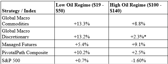 In an article published in The Institutional Investor, author Julie Segal cites 26 years of proprietary data from PivotalPath to suggest a stark divergence in performance when crude oil trades in the “extreme” range of $100 to $140 per barrel. While the S&P 500 historically drops by 1.6% (annualized) in this regime, specialized strategies offer a powerful hedge:
