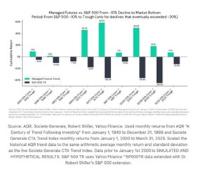 Trend-following enables diversification by benefiting from macro dislocations and performing well during sustained inflationary or deflationary moves. However, trend-following can be a powerful diversifier whose benefits don’t show up immediately. Research suggests that a typical trend-following strategy has to overcome the initial “10% drop” to deliver market-beating results.